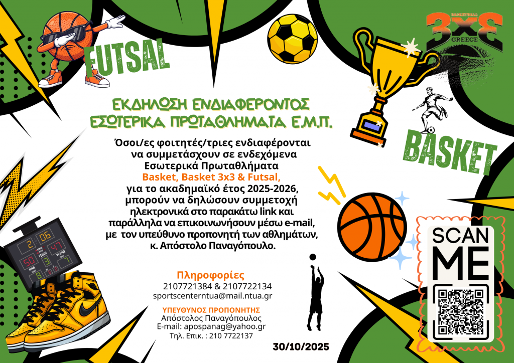 ΑΝΑΚΟΙΝΩΣΗ ΕΚΔΗΛΩΣΗΣ ΕΝΔΙΑΦΕΡΟΝΤΟΣ 🏀 Μαθήματα - Προπονήσεις & Εσωτερικά Πρωταθλήματα Καλαθοσφαίρισης ΕΜΠ.